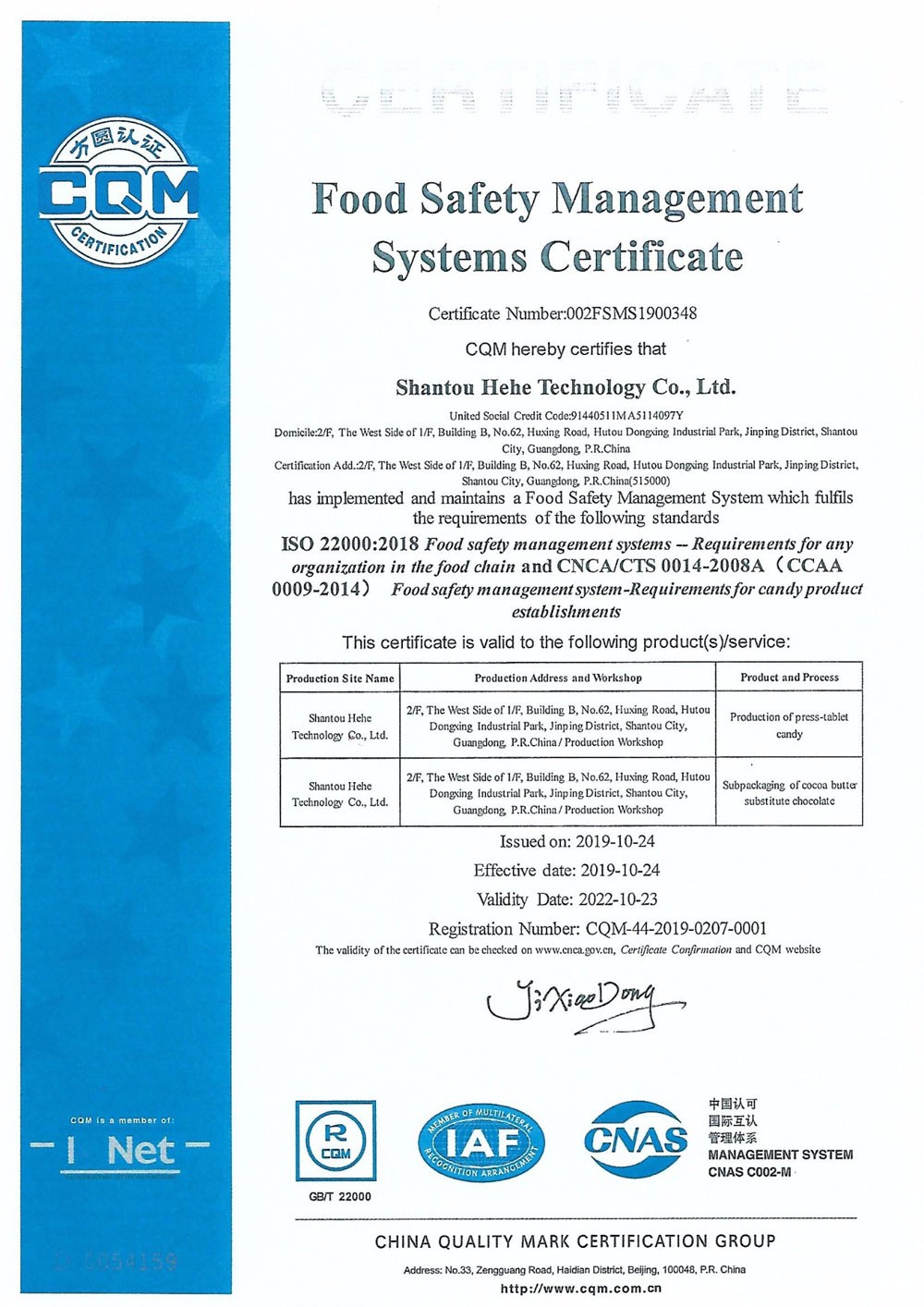 ISO22000 Certificate