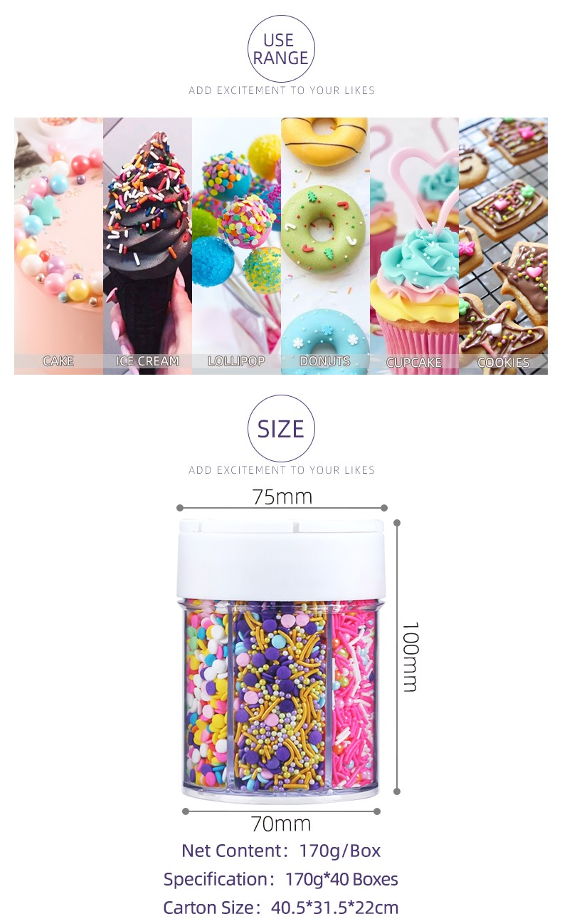 Shantou Hehe Technology Co., Ltd was established in 2017. We are specialized in manufacturing and selling full range of sprinkles candy and decoration candy. We can provide OEM service for customers. Best quality, best service and reasonable prices for all the customers. Our products are widely recognized and trusted by users and can meet continuously changing economic and social needs. We welcome new and old customers from all walks of life to contact us for future business relationships and mutual success!