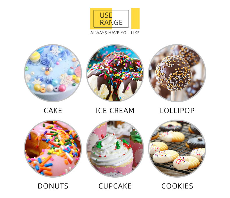 Widly use in cake,ice cream,lollipop,cookies,chocolate.,etc.