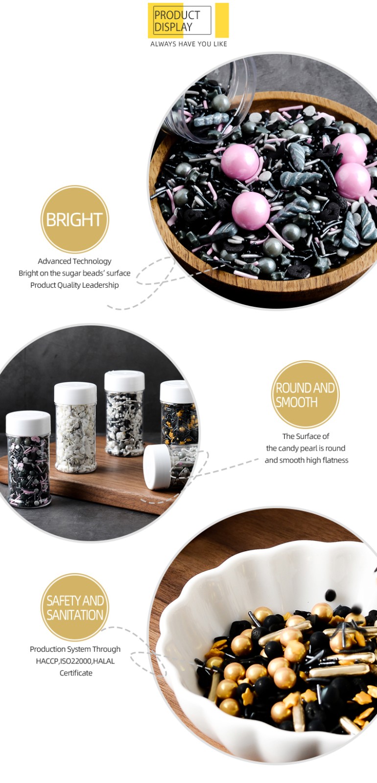 Shantou Hehe Technology Co., Ltd was established in 2017. We are specialized in manufacturing and selling full range of sprinkles candy and decoration candy. We can provide OEM service for customers. Best quality, best service and reasonable prices for all the customers. Our products are widely recognized and trusted by users and can meet continuously changing economic and social needs. We welcome new and old customers from all walks of life to contact us for future business relationships and mutual success!