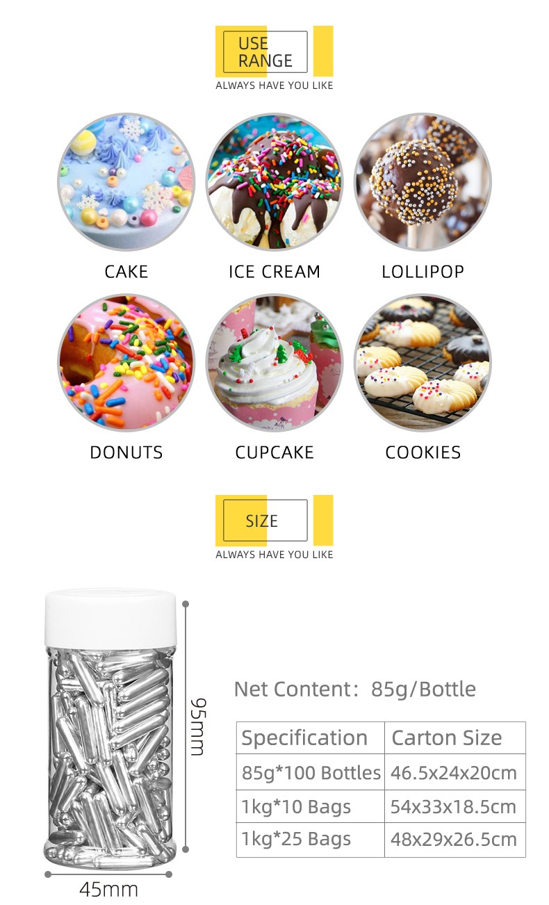 Widely use in cake,ice cream,lollipop,cookies,chocolate.,etc.