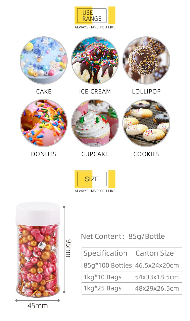 Widely use in cake,ice cream,lollipop,cookies,chocolate.,etc.